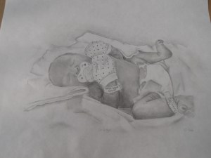 Voici un des cadeaux reçus aujourd’hui. Un beau dessin de notre petit trésor, sans tout l’artifice médical.
