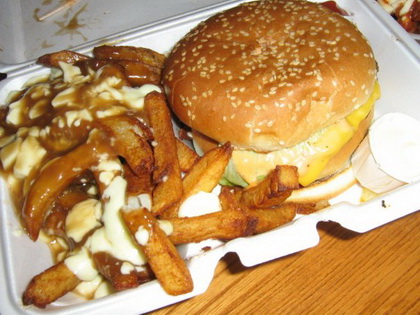 Sa spécialité qui a fait sa renommée: le Déro-poutine! Un gros hamburger tellement délicieux (voir la photo ci-dessous).