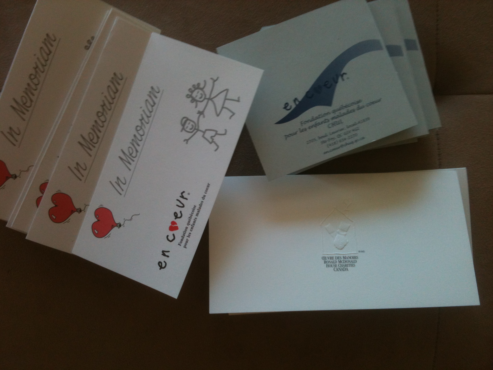 Dans le courrier, une autre énorme enveloppe venant de la Fondation En Coeur. En plus, une autre enveloppe provenant de la Fondation Ronald McDonald; nous avions déjà reçu un envoi la semaine dernière de leur part.