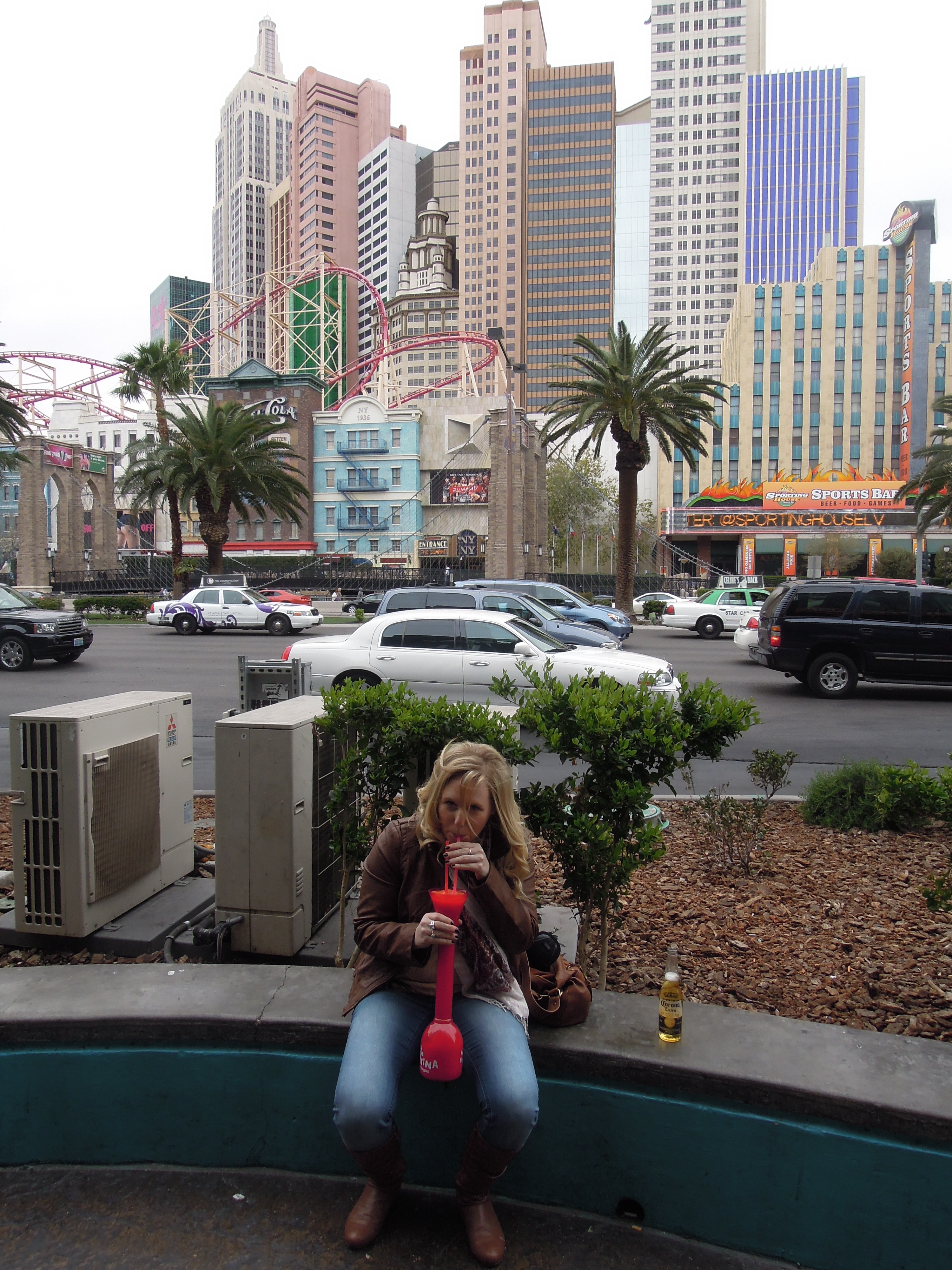 Cynthia devant le New York New York avec son Margarita « yard long »