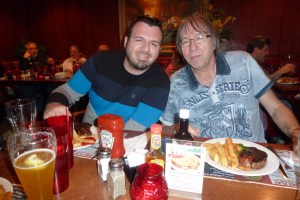 Puisque nous avions une belle décapotable, l’occasion était trop belle. Nous en avons profités pour faire un petit aller-retour sur la Strip avant de nous trouver un resto pour souper; nous étions affamés. C’est finalement à Ellis Island, où moi et Cynthia étions déjà allés hier que nous avons soupé. Comment passer à côté de ce fameux « steak spécial ». Total de la facture pour 3 salades entrées, une soupe, 4 assiettes de steak et 6 bières? 50$ et j’ai laissé un généreux pourboire!! Malade!! Meilleur rapport qualité-prix à Vegas, sans équivoque!