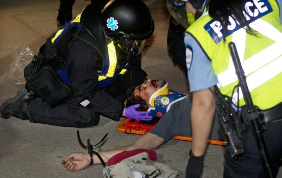 Hier soir aura été une terrible soirée à suivre le déroulement des manifestations. Journalistes arrêtés qui se font même dire par un policier qu’il s’en câlisse (désolé de l’emploi de ce mot) que ce soient des journalistes, plus de 300 arrestations, des reporteurs de CUTV qui se font matraqués et un manifestant gravement blessé.