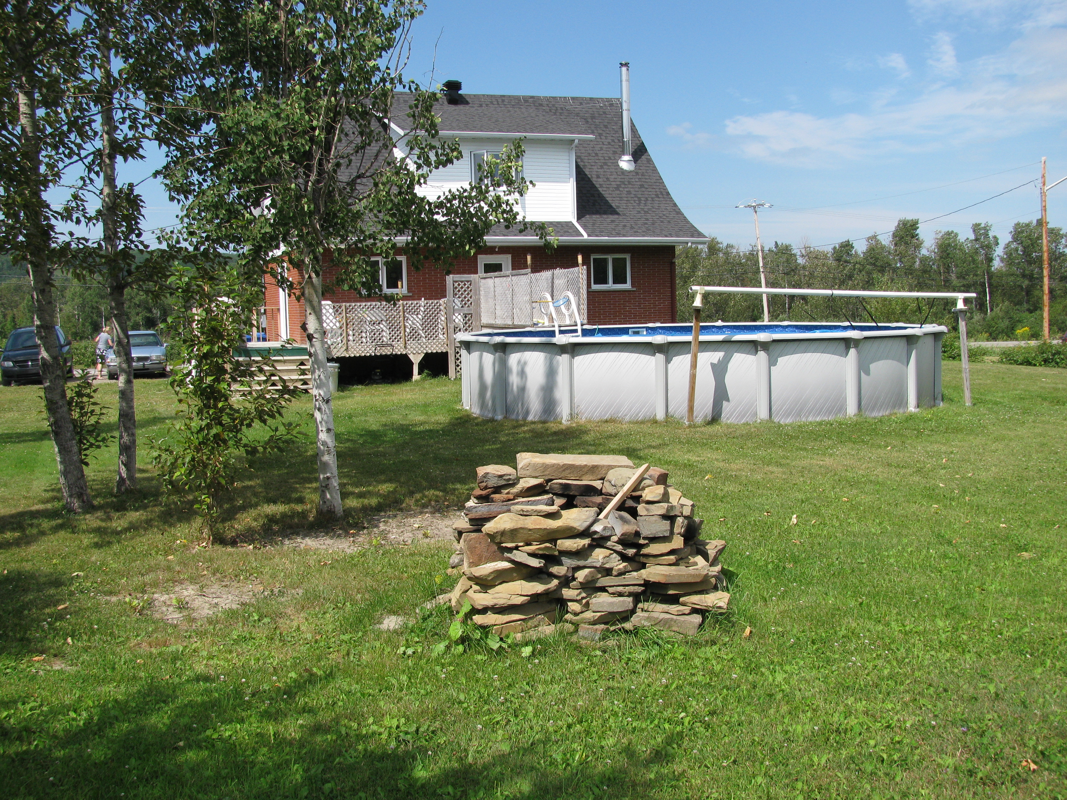 En passant, la piscine, une énorme piscine ronde de 27 pieds, était déjà sur place quand nous avons acheté la maison il y a deux ans et demi. Sinon, ce serait un spa qui honorerait notre cour.