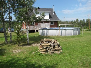 La voici dans toute sa splendeur au milieu de notre cour arrière, LA piscine!