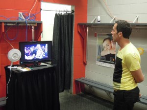 Je vous laisse avec quelques photos prises dans notre loge en compagnie d’Alain et de Véronique ainsi que le vidéo de notre passage. Désolé pour la qualité du vidéo, j’ai filmé la télé à partir de mon appareil photo pour pouvoir le mettre le plus rapidement possible en ligne. Je chercherai quelque chose de mieux cette semaine.