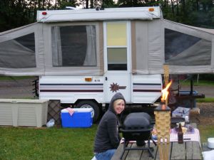 Avec la nouvelle tente-roulotte, au camping d’Amqui!