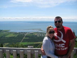 Au sommet du Mont St-Joseph, on voit la pointe où est situé le camping de Carleton!