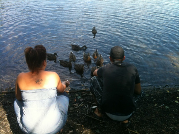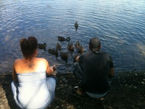 Caro et Charles ont nourri les canards sur le bord du lac Matapédia