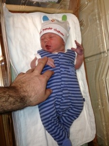 1. Vraiment mignon 🙂 et tres chic dans son beau petit pijama bleu hehe vous devez avoir passé par toutes de sortes d’émotions!! Je vous souhaite beaucoup de bonheur avec ce beau bébé tout neuf 🙂