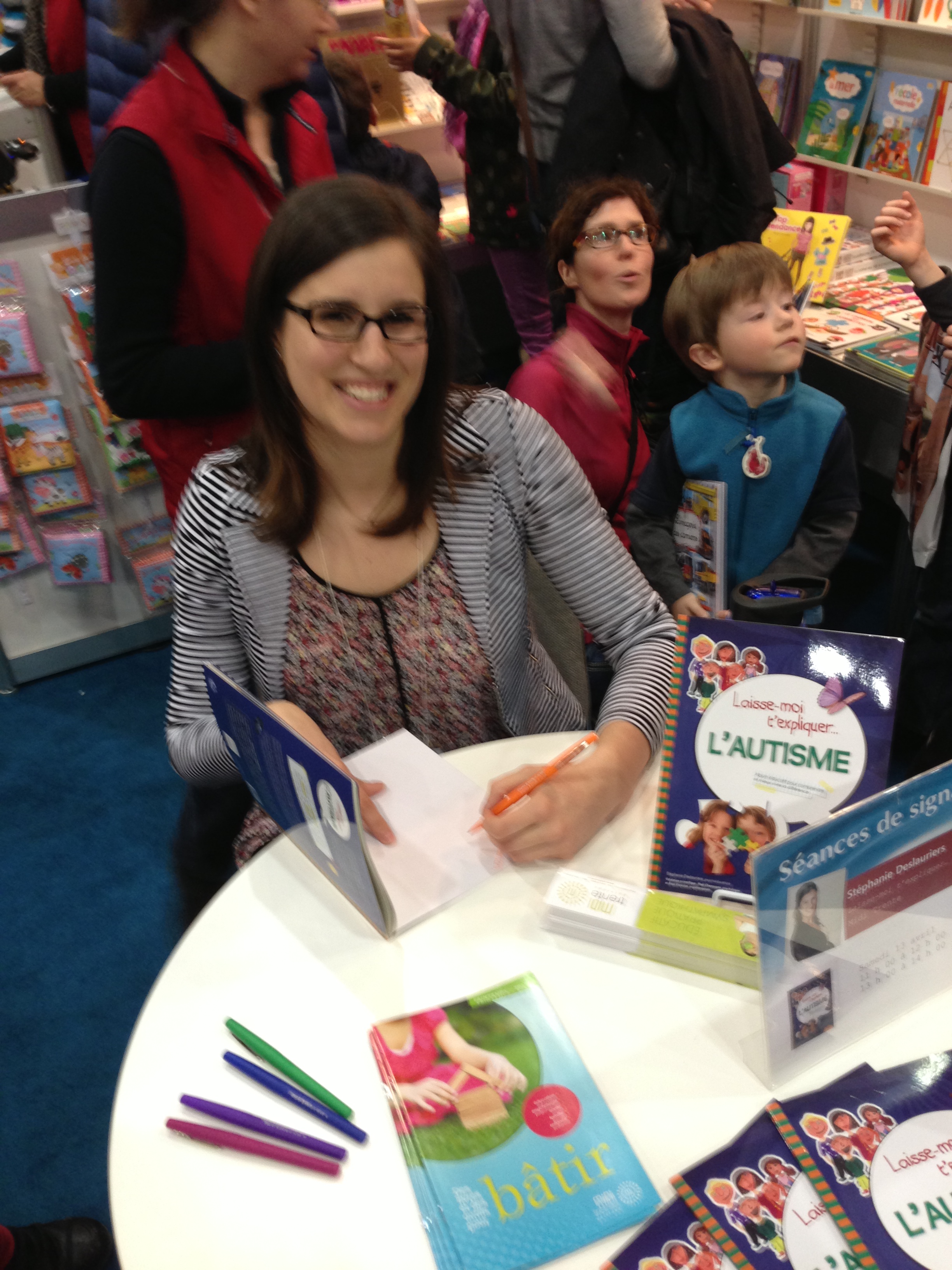 Suite à ma signature, j’ai été piquer un brin de jasette avec la toujours souriante Stéphanie Deslauriers qui a écrit sur l’autisme. Elle était venue me voir auparavant à mon kiosque. Une autre belle rencontre que ce fut!