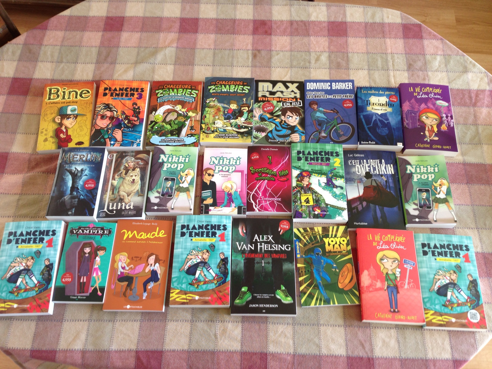 Wow! Quel prof super! Le 2eim livre de la première rangée c’est quoi? Je suis curieuse, dans ceux « plus gars » c’est le seul qu’on a pas…ca risque d’être à mettre dans ma liste d’Achat!;)