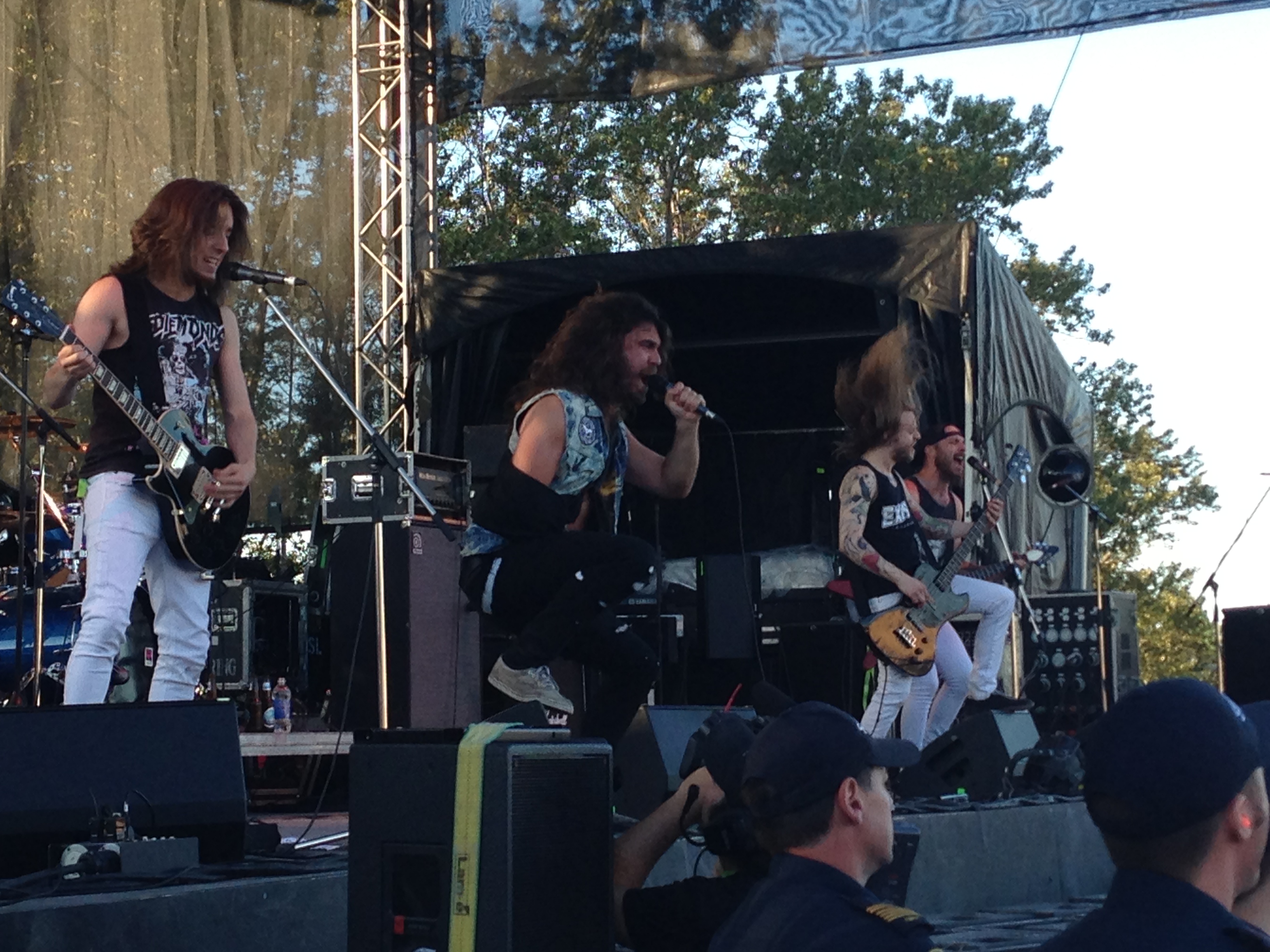 Je suis arrivé sur le site pour les dernières chansons du groupe punkrock de Québec Mute. J’ai bien aimé ce que j’ai vu et entendu! Les ont suivi les rockeurs de Québec Dance Laury qui ont déjà fait la première partie de Metallica à Québec il y a deux ans, c’est peu dire. On a eu droit à du gros rock sale comme il fallait s’y attendre, au grand « plaisir » de Cynthia qui m’accompagnait en cette soirée, elle qui devait rester à la maison avec bébé, mais qui a finalement cédé après avoir entendu du Offspring et Goldfinger dans la maison toute la journée (pression subtile de ma part).