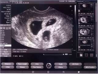 La première échographie nous a permis de voir trois beaux bébés en santé qui verront le jour quelque part en octobre.