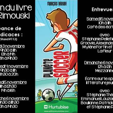 Grosse semaine à Montréal qui s’en vient avec le Salon du livre. La fête du livre s’ouvre ce mercredi 16 novembre pour se conclure lundi le 21 novembre. Dans mon cas, j’y serai du mercredi au samedi! Après un Salon du livre de Rimouski au-delà de mes attentes, j’ai vraiment hâte de voir comment le plus gros … Lire la suite Salon du livre de Montréal 2016