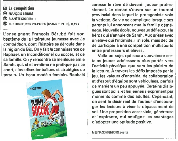 - Journal L’Avantage – 30 mars – Le Rimouskois François Bérubé fait paraître le tome 2 de Planète soccer